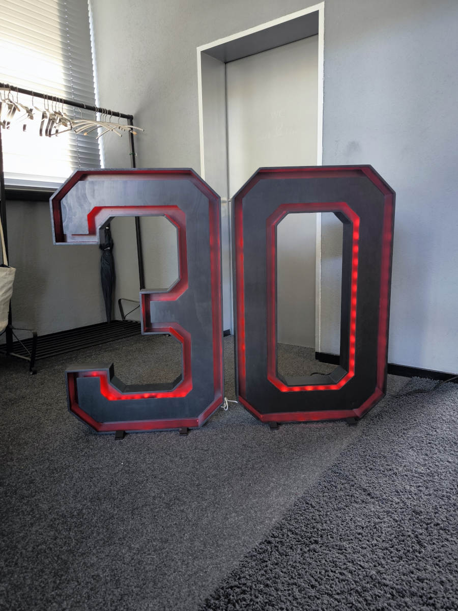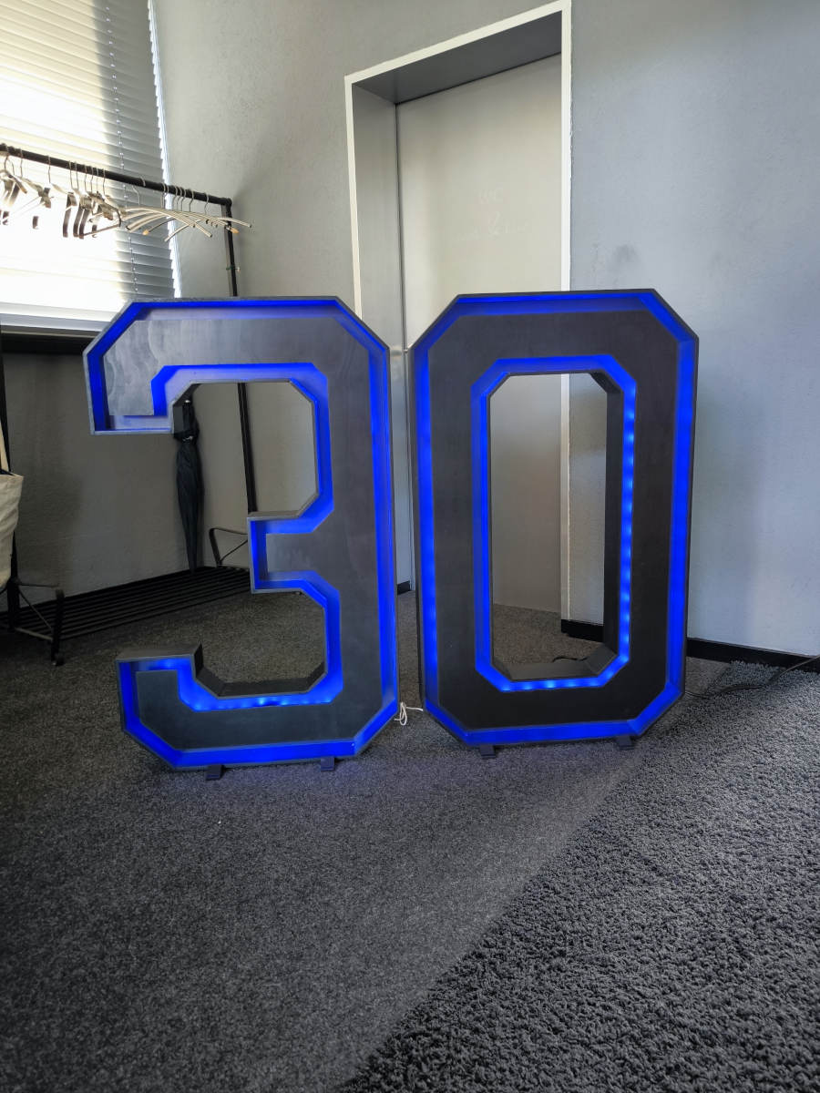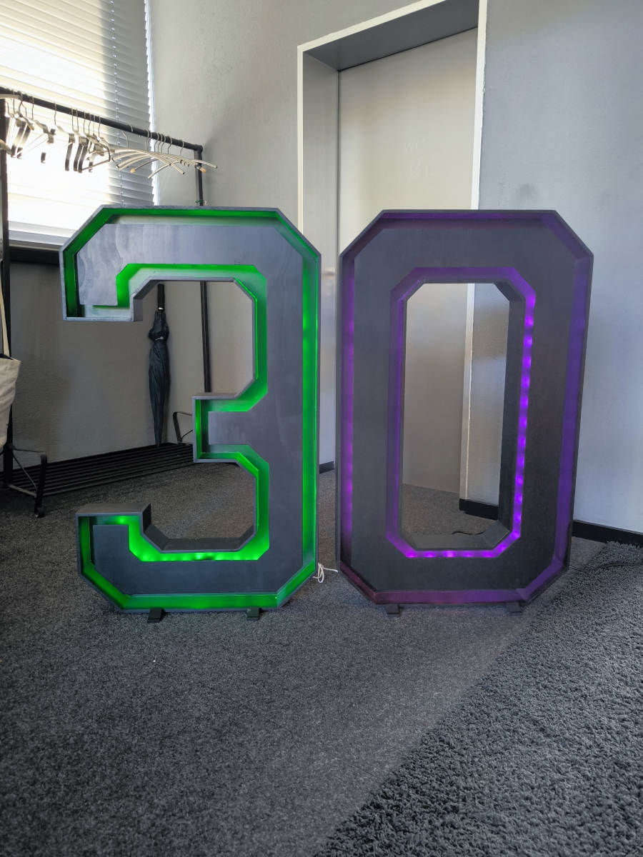 Große XXL Leuchtziffern für deine Party! Aufstellen, anschliessen, fertig! Die Ziffern können in einem durchschnittlichen PKW einfach auf der Rückbank (100cm Breite) transportiert werden